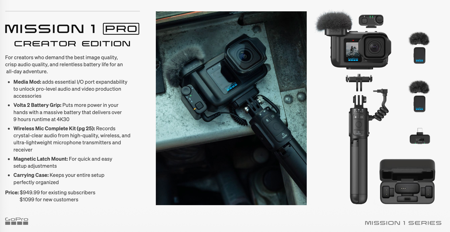 There are three models of the newly named GoPro Mission 1 series, which presumably replace the previously assumed Hero 14 name. They are as follows: