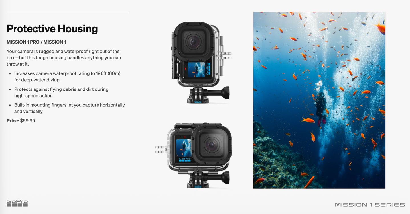 GoPro Mission 1 Series Underwater Housing (to 60m/196ft deep): $59