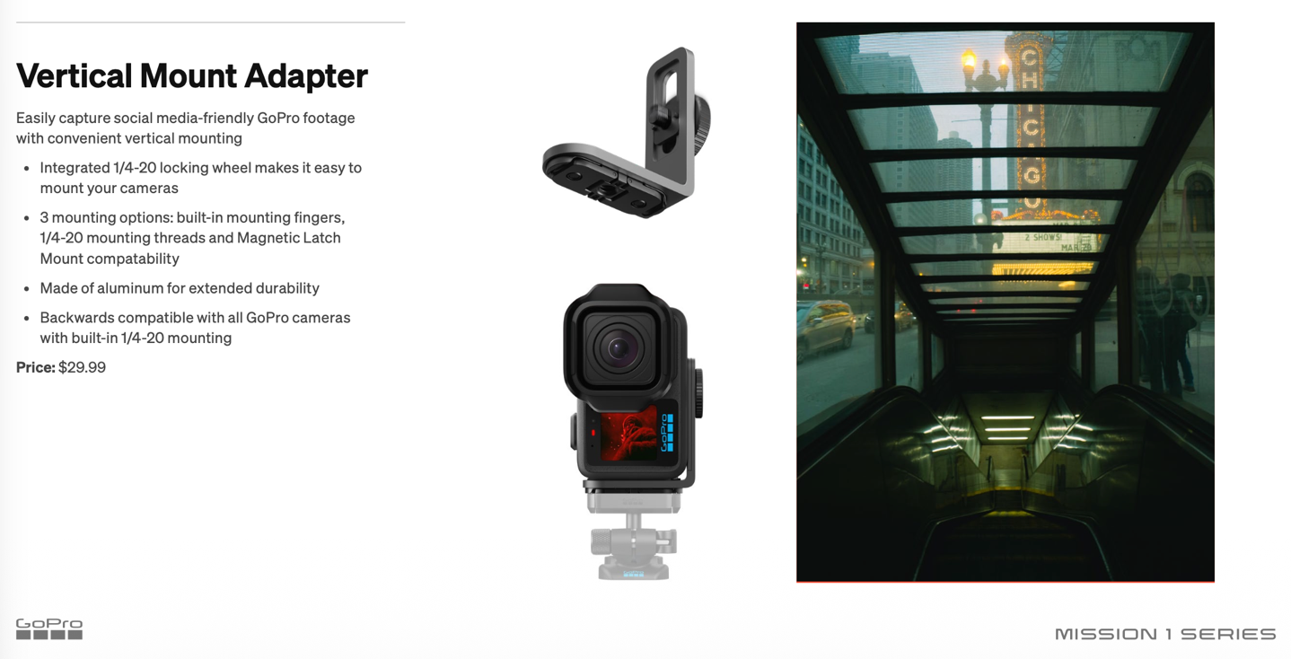 GoPro Mission 1 Series Vertical Mount Adapter: $29