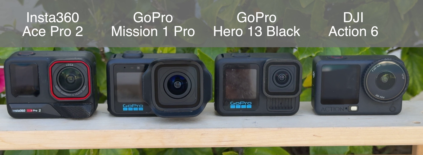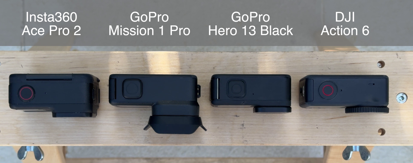Here’s a simple lineup of the camera and how it compares to the two other main competitors, along with the Hero 13 Black. First up, from the front: