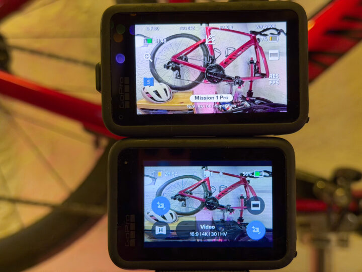 But on the bright side, the new SuperView is actually wider. I don’t have the exact FOV handy, though I just stacked the two cameras atop each other, and you can see clearly the Mission 1 Pro is wider (look at the helmet position, as well as my handlebars). I’ll take a prettier picture when it’s daylight.